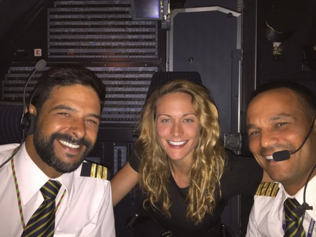 Cerca de um ano depois voltou a cruzar-se com portugueses durante a longa jornada pelo globo. Desta vez, a bordo de um avião da TAP entre São Tomé e o Gana. A “maravilhosa tripulação” deixou-a “literalmente sentar-se no cockpit do A380 com os dois pilotos extremamente profissionais e fixes, Rui e André, todo o tempo [de viagem] e foi incrivelmente épico”, recorda. “Foi definitivamente um dos melhores momentos da expedição.”