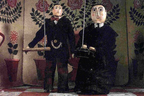 Os tradicionais títeres do Alentejo apresentam-se mais uma vez no seu palco em miniatura: um “retábulo” de madeira e tecido, com pano de boca, cenários pintados e iluminado com candeias de azeite.
