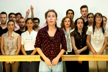 Um grupo de jovens chega e monta o seu posto de trabalho. Vêm mostrar por que têm o nome de “precários” apesar de lhes chamarem “flexíveis” no mercado de trabalho.