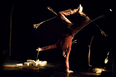Num universo de máquinas e pedaços de madeira, um homem debate-se com a dificuldade de se pôr de pé e de assim se manter.