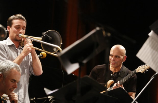 O ecléctico guitarrista parisiense Marc Ducret lidera uma formação de jazz de câmara que tem a particularidade de integrar três trombones, para além de percussões e piano.