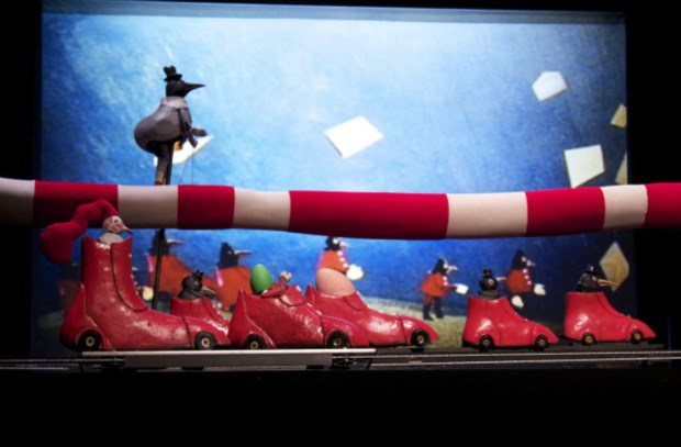 Um conjunto de personagens-pássaro caminha ao longo de uma linha vermelha e branca, no final da qual aparece o sorriso enigmático do Senhor Kat. Um espectáculo de marionetas concebido e encenado por Paulo Duarte com recurso a vídeo e música que se apresenta como um "balé feérico e mecânico".