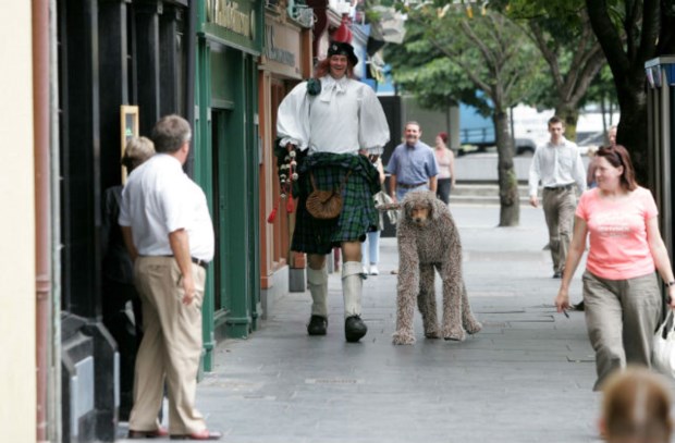 Num espectáculo de teatro de rua integrado no FIMFA Lx15 - Festival Internacional de Marionetas e Formas Animadas, o gigante escocês Big Rory passeia com o seu maroto cão Ochie por Lisboa.
