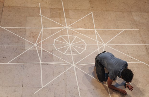 O marroquino Radouan Mriziga apresenta uma criação que questiona a simbologia. Ao longo do espectáculo, tão físico quanto conceptual, é o seu próprio corpo que se transforma em medida para a construção de um símbolo, como se fosse um instrumento arquitectónico ou formal para alcançar um ideal.