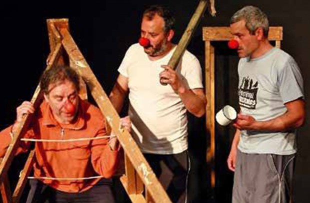 Uma comédia sem palavras, pelo Teatro do Montemuro, escrita por Andrew Harries e encenada por Peter Cann. Não são quatro, como diz o título, mas três os "palhaços" em cena: a Guerra, a Fome e Peste, que se entretêm a criar novos mundos enquanto esperam pela chegada da Morte, o quarto cavaleiro do Apocalipse.