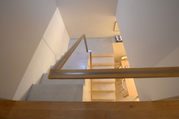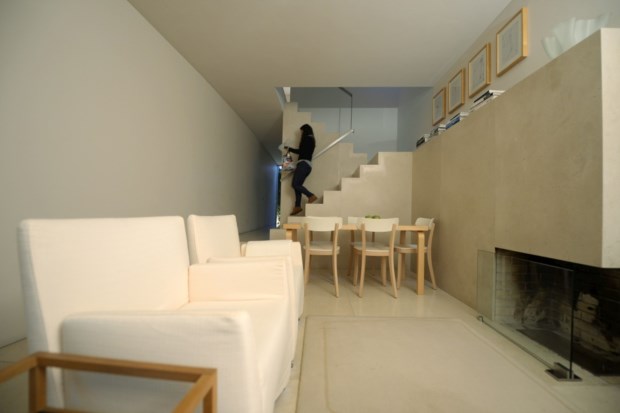 Já reconfortados e aquecidos, chega a hora de conhecer o quarto escolhido. Ao contrário dos dois quartos, localizados no primeiro andar, e do Garden Loft, com entrada pelo jardim, o Sky Loft está localizado a alguns passos da casa, do outro lado da rua. A vontade de sair do conforto da casa principal, de guarda-chuva e chave na mão, para chegar ao nosso loft, é perto de zero. Garante-nos Fabiana que o (não tão) pequeno T0, cuja reabilitação é também da autoria de Souto de Moura, é um espaço independente “muito confortável”, com 36 metros quadrados.