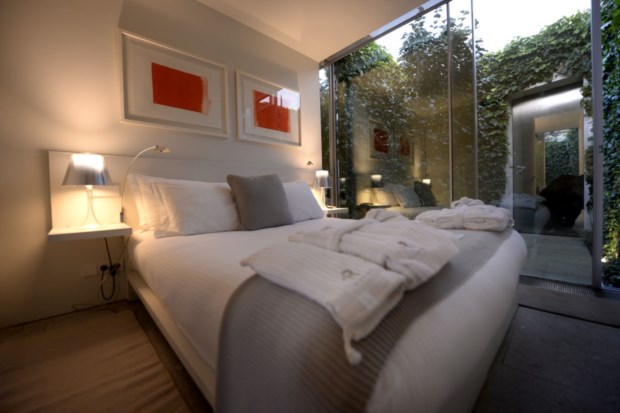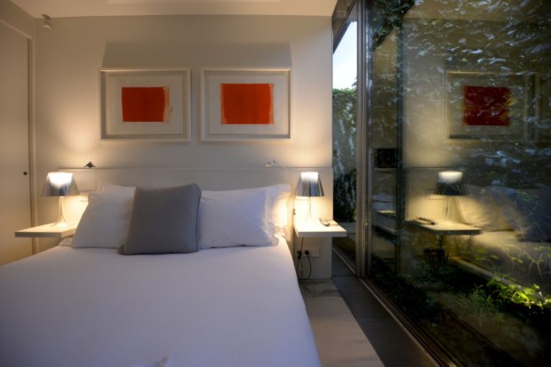 O caos organizado em que um pequeno-almoço buffet se pode transformar, sobretudo em hotéis com muitos quartos, é para esquecer. Perto da hora combinada na véspera, escolhemos uma das mesas disponíveis — na sala de estar, no jardim exterior ou interior ou no próprio quarto — e esperamos pelo pequeno-almoço. Além das habituais bebidas quentes, pães, croissants e cereais, temos direito a uma óptima compota de frutos vermelhos e a um pequeno e prateado tabuleiro cheio de coisas boas: omelete de queijo, ovinhos de codorniz e frutas (destaque para as delicadas physalis), complementados com um iogurte e um mini-queque de laranja. Demoramo-nos nisto perto de uma hora, sozinhos, com as paredes de hera verde do jardim como pano de fundo.