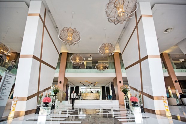 Pelo interior, a luz é usada sabiamente e percebe-se que a ideia passa por criar ambientes acolhedores e ao mesmo tempo pouco intimistas, não criando dessa forma nenhum tipo de sentimento constrangedor. Com uma paleta de tonalidades de bege, ferrugem e azul turquesa, qualquer espaço por onde nos passeamos é airoso e espartano, quer no mobiliário quer na decoração. O facto, porém, de não haver elementos decorativos em excesso não torna menos imponentes os que foram seleccionados para integrar o espólio do hotel. Bem pelo contrário. É talvez por não termos de lidar com o ruído do excesso de informação que tantas vezes nos invade à entrada de uma unidade hoteleira que temos tempo de sobra para absorver todo e qualquer detalhe. A começar pelos enormes candeeiros, projectados pela marca portuguesa Mood, que nos obrigam a pôr o nariz no ar.