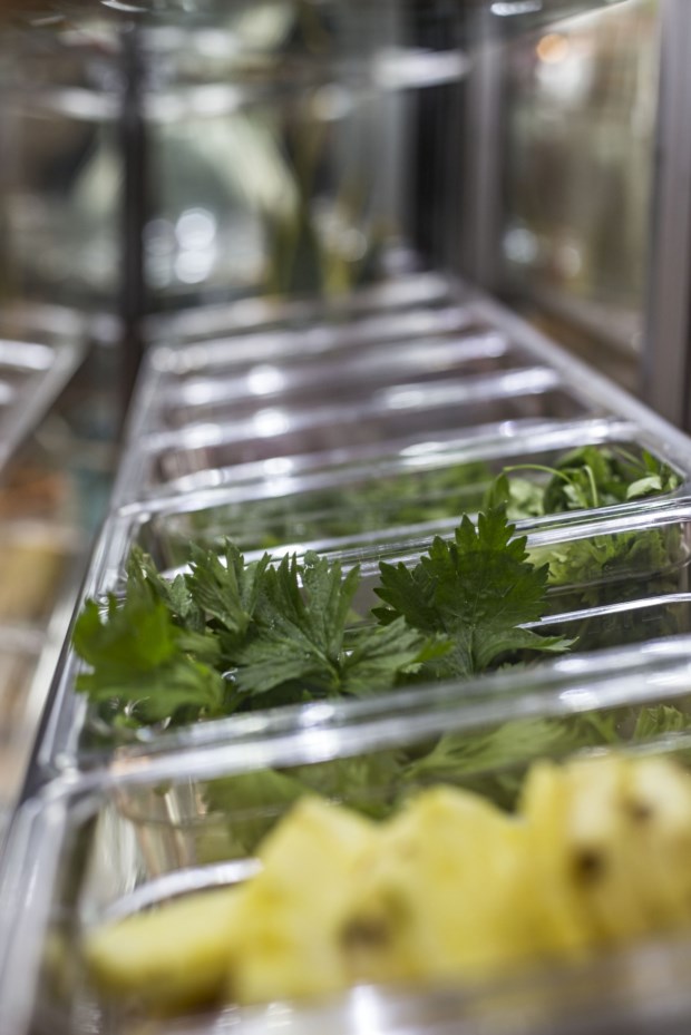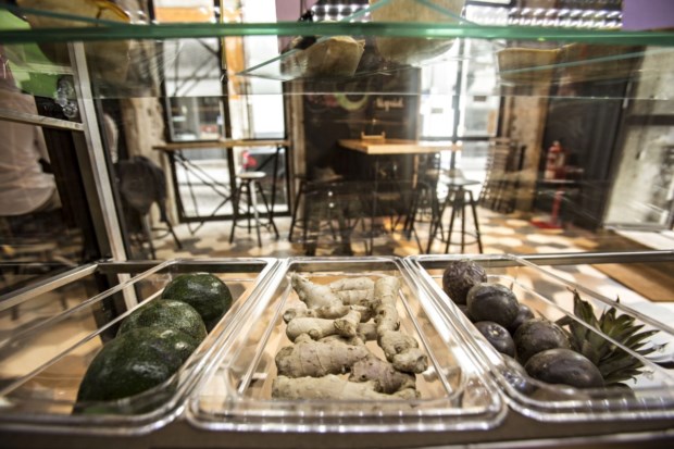 O menu pequeno-almoço, "que também sai muito bem ao lanche", é um gelado de açaí granola e banana, por 3,90 euros. Mas há também fatia de pão com requeijão e doce de abóbora (1 euro), fatia de pão com mel (0,90) e pão torrado com creme de soja e compota (1 euro).