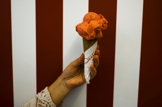 Quem já conhece as outras lojas da Santini vai sentir-se em casa ao entrar na nova gelataria da Baixa do Porto. A decoração, das riscas largas vermelhas e brancas, passando pelas fotografias a preto e branco, é igual à que encontrará em São João de Estoril, Cascais, no Chiado (Lisboa) ou em Carcavelos. E os sabores, os sabores que cativaram uma legião de fãs, de tal modo militante que não se importa de esperar em longas filas pelo momento de poder saborear um gelado Santini, também continuam os mesmos. Não seria um Santini se assim não fosse. Para o Porto foi criado o Invicto, mas se não é do Norte, não se preocupe, ele estará disponível também nas outras lojas da marca.